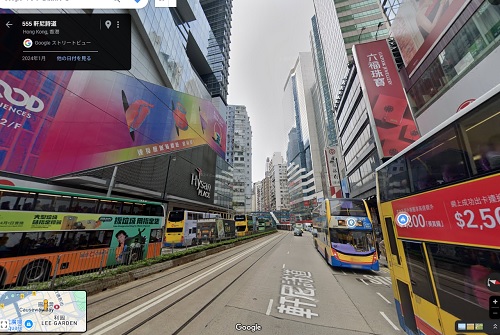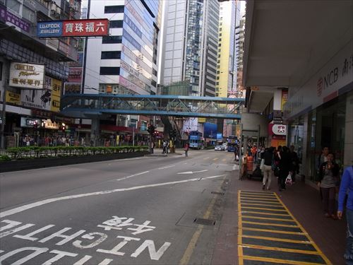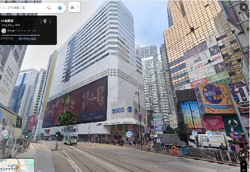 ![]() そごうから350mくらい西に戻ったところ。青い歩道橋は波斯冨街(Percival St) |