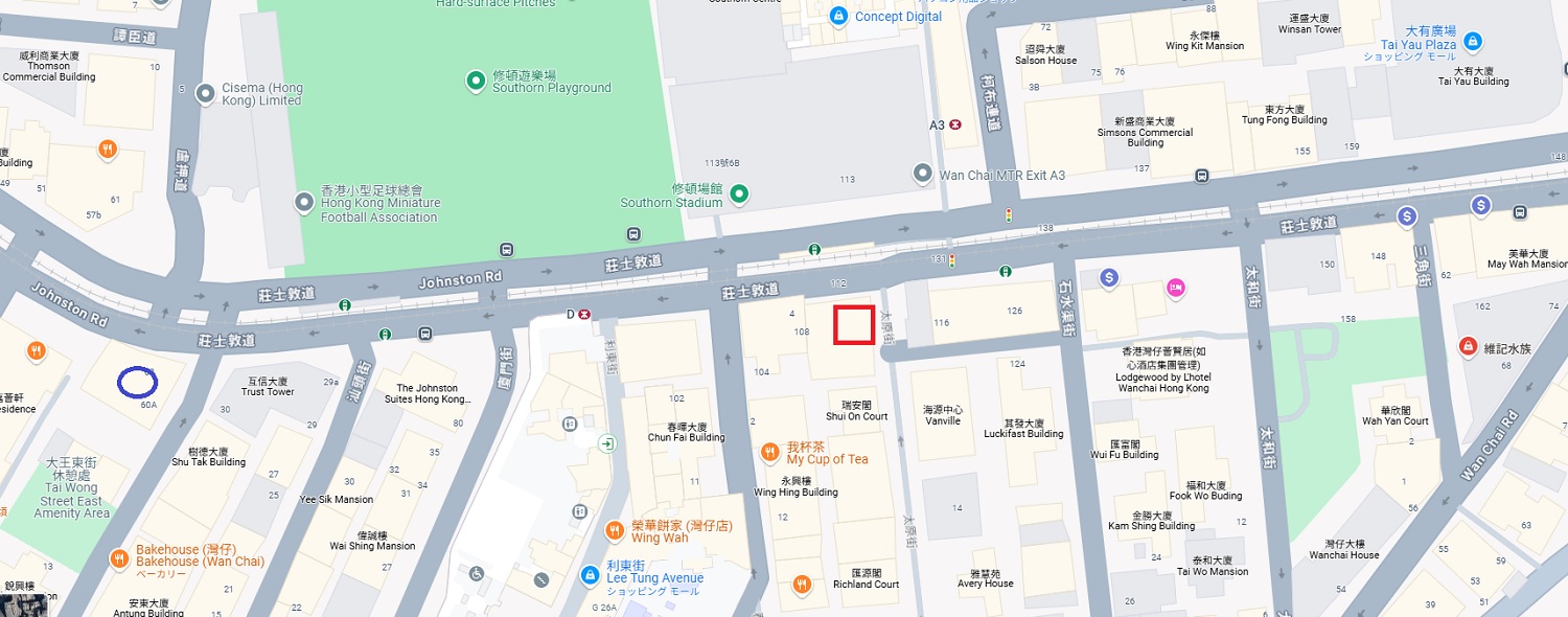 ![]() 中匯大楼 Wan Chai Rd 164 1964年に建てられた16階の雑居ビル 下の写真の赤い四角 |
