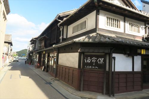 入江保命酒本店。保命酒の起源は約350年前、万治2年。生みの親は大阪の医師・中村吉兵衞。すでに醸造業が栄えていた鞆の浦のお酒と、吉兵衞の漢方の知識が合わさって、保命酒が生まれた。やがて保命酒は、江戸幕府より備後の特産品として庇護され、全国に知れわたった。上の地図の黄色の① |