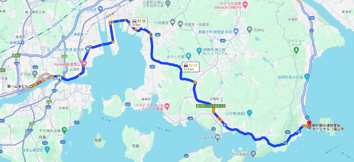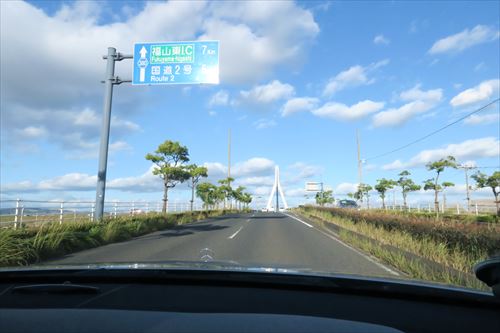鞆の浦から福山市街地に入るところの芦田川にかかる芦田川大橋 |