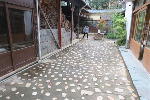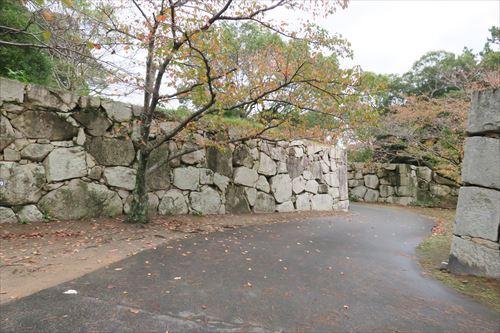 右は塩矢倉跡。武器をしまっていた。この辺には13の矢倉があった |