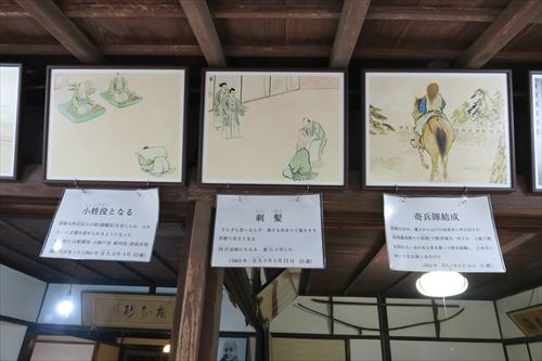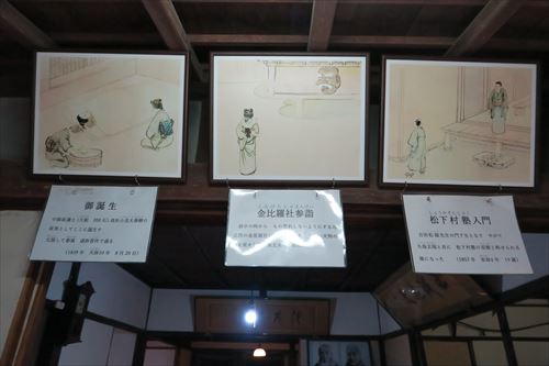 ご誕生 1839/8/20 中級藩士(大組200石)高杉小忠太春樹の長男と して誕生。元服して春風という名に。晋作は通称 金毘羅神社参詣 近所の金毘羅神社にもの忘れしないように参拝。 大きな天狗の面を見せて物怖しないようにもした 松下村塾入門 1857 19歳の時。 入塾後久坂玄瑞と双璧といわれるようになった |