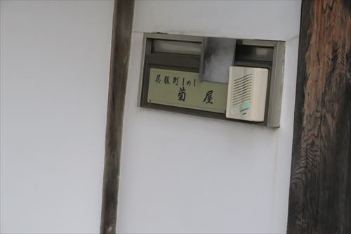 菊屋の東門のにある表札。呉服町1の1。写真を撮った時は大きな商家で名前は菊屋というんだなという感じ |