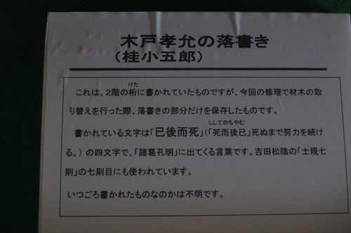 間取り図の右下の公用の間、8畳。「今日」の額は7、8歳の時に木戸孝允が書いたもの |