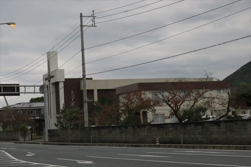 南東から、名前のとおり松に囲まれている。奥が杉家旧宅 |