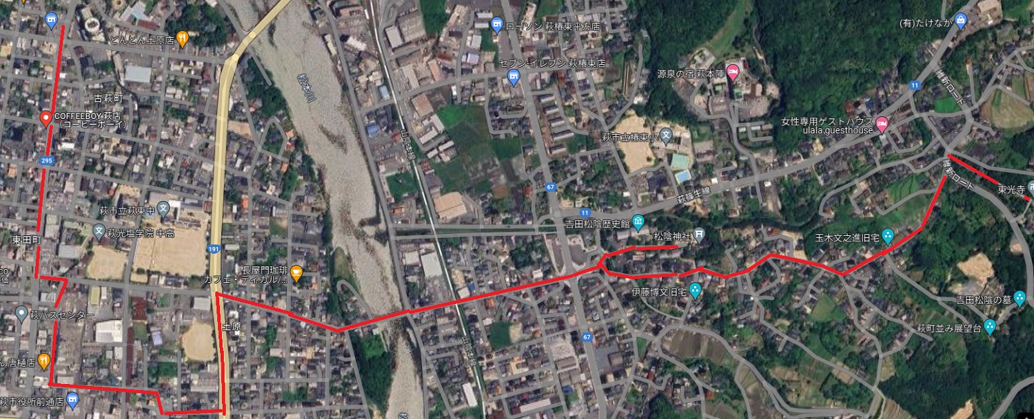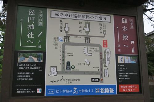手前の写真の右端にも写っていた吉田松陰の誕生地の案内標。生誕地までは300m |