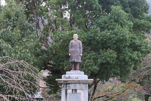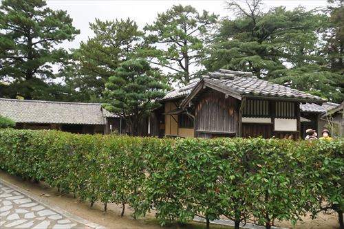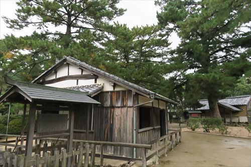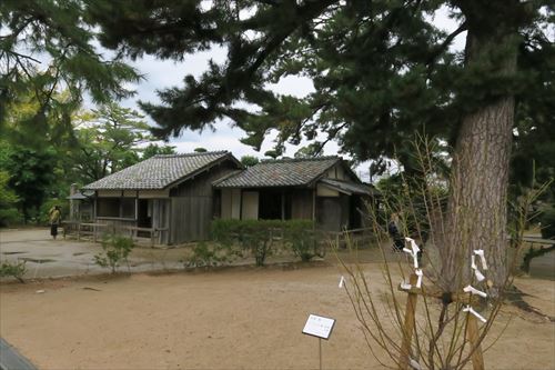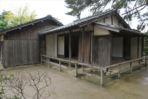 伊藤博文は、天保12年(1841)熊毛郡束荷村(現在の山口県光市)の農家に生まれた。幼名は利助、のち春輔、そして“博文”と改めた。 この旧宅は、木造茅葺き平屋建ての約29坪の小さな家。もとは萩藩の中間 伊藤直右衛門の居宅だったが、安政元年(1854)に伊藤博文の父・林十蔵が伊藤家の養子となったため、一家をあげて伊藤家に入家。その後、博文が明治元年(1868)に兵庫県知事に赴任するまでの本拠となった。 写真中央左の建物は萩焼の店 |