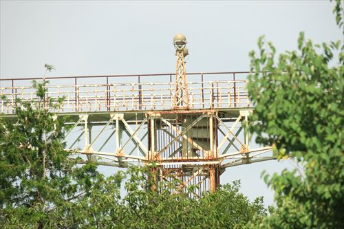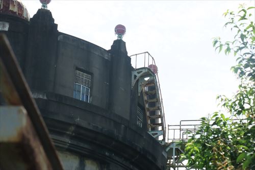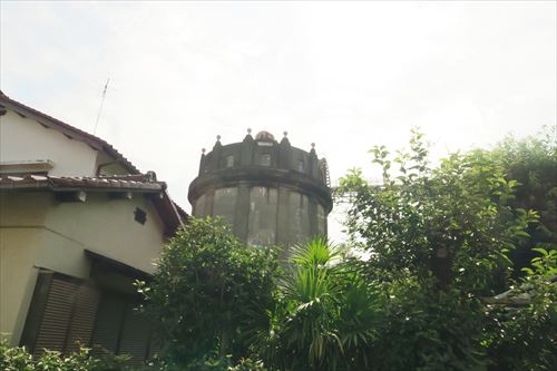 周りの壁は鉄筋コンクリート製で、12本のピラスター(付け柱)が給水塔の上部まで伸び、頂上部には直径53㎝の薄紫色のグローブ(竣工当時はガラス製、現在はポリカーボネート製)が取り付けられている。この意匠が給水塔をして「丘上のクラウン」と呼ばれた。 |