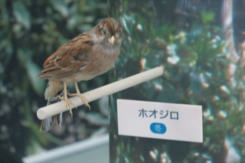 全長16.5cm。全体は赤味のある褐色で、背には黒色の縦斑がある。オスの顔は白と黒の模様で眉斑と頬線は白色で、襟は灰色。メスは顔に黒色はほとんどない。地鳴きは「チチッチチッ」と二声を出す。アオジをはじめとするホオジロの仲間は、いずれも「チッ」といった一声なので区別は容易。さえずりは高い場所で胸を張った姿勢で行う。シジュウカラの頬が大きく白いので、それをホオジロと間違える人も多い。 |