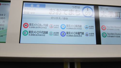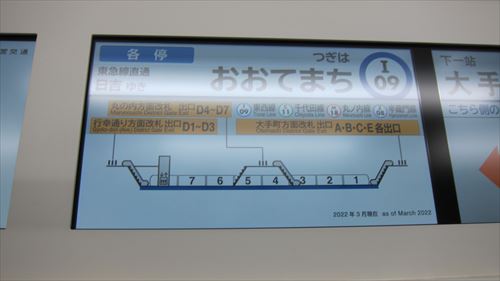 地下鉄の車内にも降り口の表示がされるようになった |