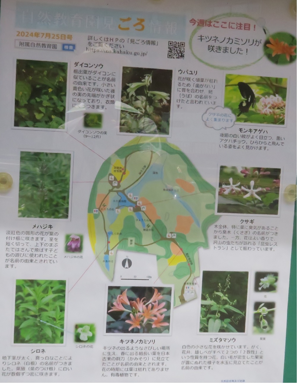 左上から右下に アオスジアゲハ、キタキチョウ、ムラサキシジミ、ツマグロヒョウモン、ヤマトシジミ、シジュウカラ、メジロ アゲハ、モンシロチョウ、コミスジ、アカボシゴマダラ、クロアゲハ、カワセミ、ヒヨドリ カラスアゲハ、シオカラトンボ、オオシオカラトンボ、ショウジョウトンボ、コシアキトンボ、チョウトンボ、アジアイトトンボ コバキボウシ、ヤブラン、キツネノカミソリ、ウバユリ、ギンヤンマ、ミンミンゼミ、クマバチ スマトラノオ、ハクソカズラ、ミズヒキ、ミソハギ、ナカコガネグモ、クサガメ、ニホンカナヘビ |