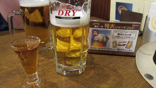 ビール中が普通の大、ビール大が普通の特大のサイズ |